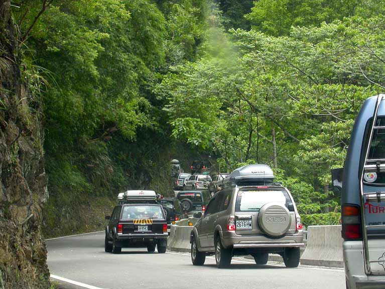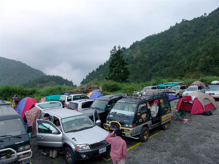 車隊中午在山莊停車場用餐