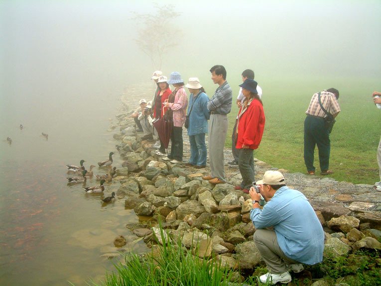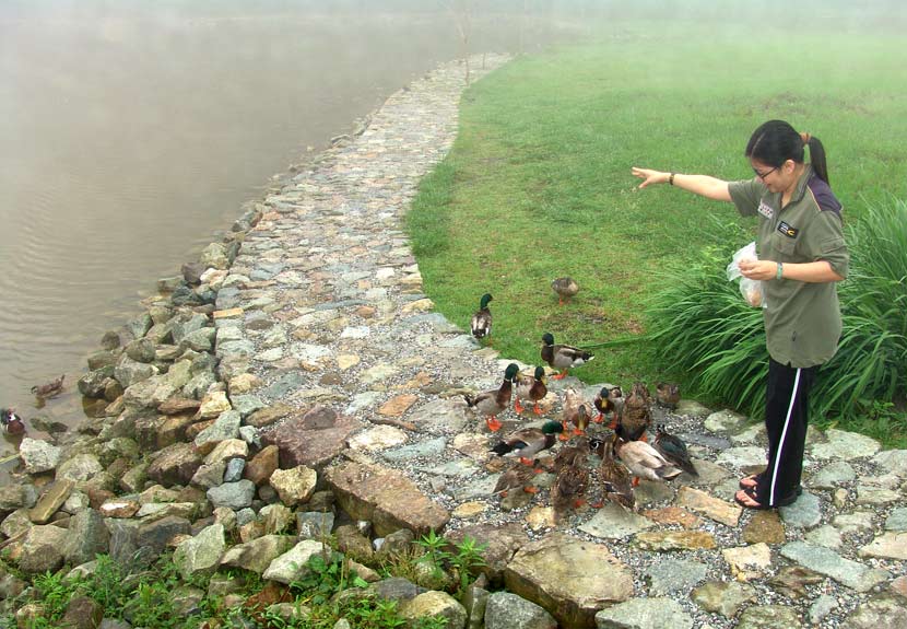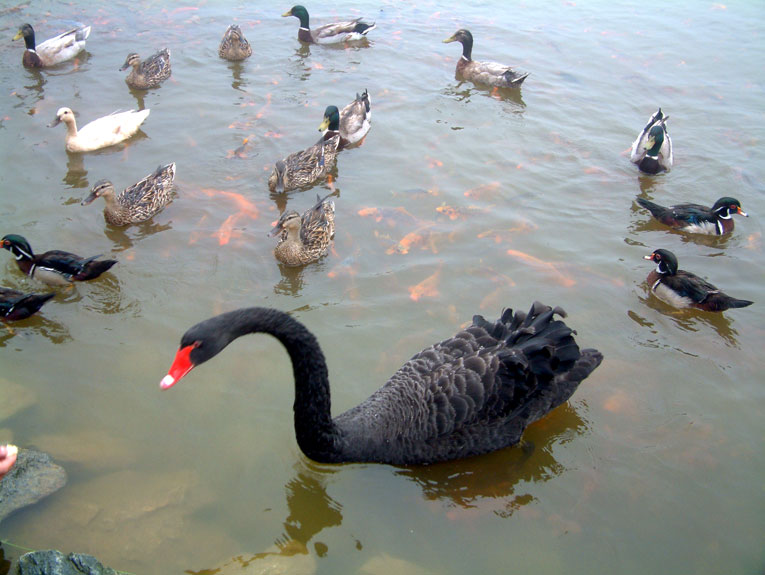 黑天鵝、鴛鴦水鴉和錦鯉都會追著人跑,看能否有東西吃