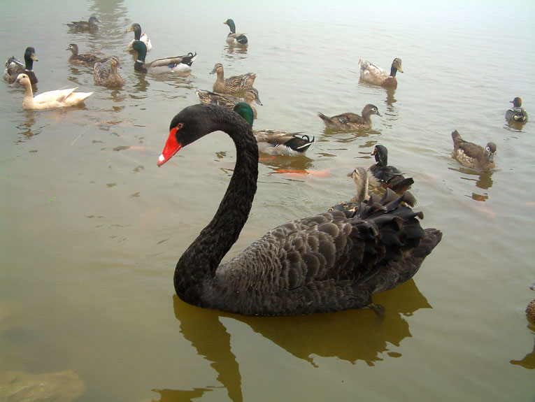 黑天鵝、鴛鴦水鴉和錦鯉都會追著人跑,看能否有東西吃