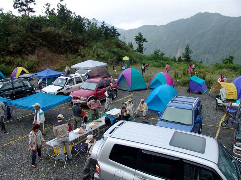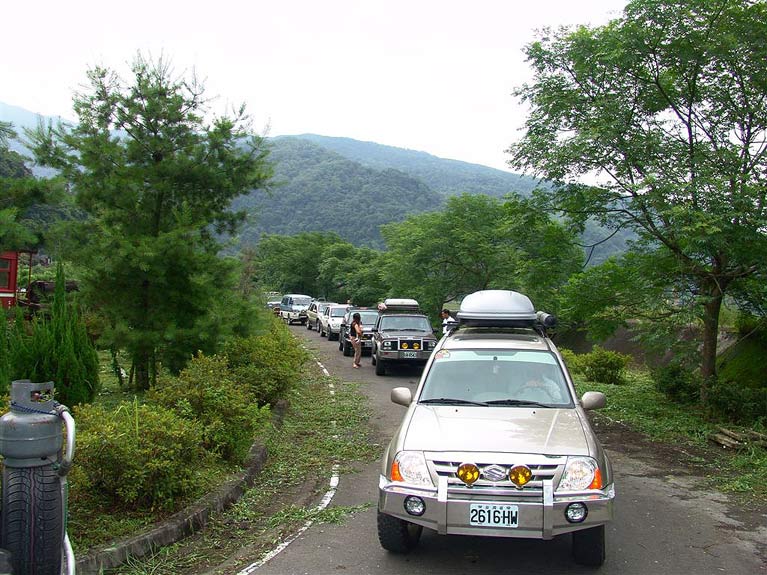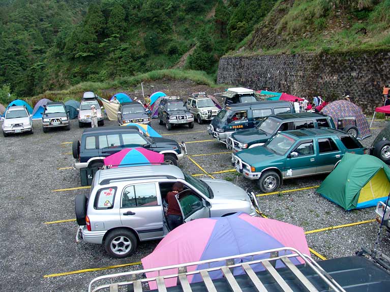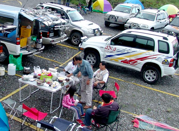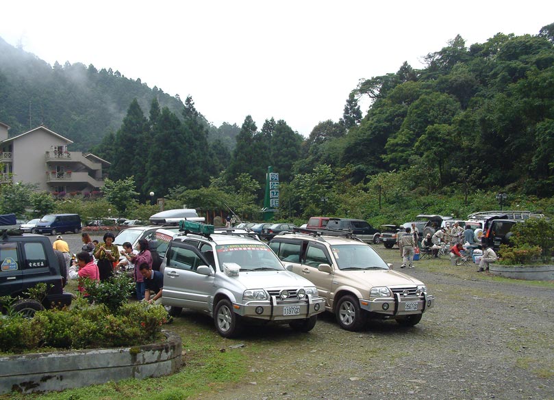 車隊中午在山莊停車場用餐