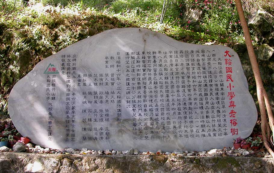 大鞍國小與老榕樹的故事刻在石塊上